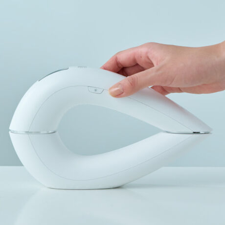 本体を付属スタンドに置いておくだけで、わずか2分のうちに自動で照射面をクリーンにできる、国内初のテクノロジー「オートクリーンシステム」。インテリアにもなじむスタイリッシュなデザインは、いつでもすぐに使えるだけでなく、つねに清潔さを保って黒ずみ・肌荒れなどの心配も抑えてくれる。